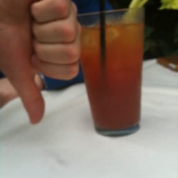 Food was 4, when weather is nice alfresco dining always gets 5 star. Service by Maria was 6 stars. Been to bar on numerous weekends but never ate here. A couple times meant to but on sundays only to Brunch and other times it rained. Love have real tree with lights strung around. Bar wraps around and is covered in some parts. They do have about six tables under a roof. Did not eat bread as was room temp and not fresh looking. Had calamari Which was okay. Tomato with mozz was fresh and flavorful. Can bring more olive oil or vinegar if want. Branzino was okay with olives that went well together. My salmon pasta was good as had a nice kick. My tiramisu was sugary the way I like it. They were out of Chardonnay which is a bit annoying but white they had was good.